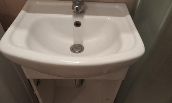 - Opis reference Gospod Goran nas je poklical zaradi nedelujoče pipe oz. težav s toplo vodo, ki ni pritekla iz pipe. Preverili smo ventila in glede na njuno starost in nedelovanje, smo ju zamenjali z novimi - krogličnimi, ki imajo mrežico za preztrezanje umazanije. Te ventile oz. mrežice lahko čistimo sami. Ker v kopalniški omarici ni bilo dovolj prostora za menjavo ventilov, smo jo skupaj z umivalnikom odstranili.. Tako smo imeli dostop do ventilov. Po zamenjavi z novimi ventili, smo postavili omarico in umivalnik na prvotno mesto. Vendar sama menjava ventilov ni odpravila težav s toplo vodo, tako, da smo preverili še kopalniško armaturo. V cevi za toplo vodo se je nahajal del tesnila starega ventila. Ko smo ga odstranili, smo ponovno priklopili cevi na vodo in preizkusili pipo. Sedaj je bil pritisk tople vode normalen, prav tako tudi hladne vode. Naravnali smo omarico, zasilikonirali režo med umivalnikom in steno, ter zaključili z delom. Čas dela ca. 1.5 ure.