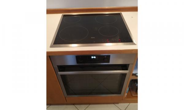 - Opis reference Primožu smo zamenjali staro kuhalno ploščo in pečico Gorenje za nov kuhinjski set AEG. Odstranili smo pečico, odklopili električni kabel, nato pa odstranili staro kuhalno ploščo. Ker ima stranka že predpripravljen trofazni priklop, smo kuhalno ploščo priklopili na dve fazi, pečico pa na preostalo fazo. Brez težav seveda ni šlo. Električna priključnica je nameščena na mestu za pečico, tako,da pečice nismo mogli pravilno namestiti, ker jo je ovirala priključnica. Odstranili smo priključnico, ter kuhalno ploščo in pečico priklopili z električnimi sponkami. Sedaj je bilo dovolj prostora, da smo pečico lahko vstavili do konca in se je lepo prilegala kuhinjskemu elementu. Pečico smo pritrdili z vijaki, preverili delovanje obeh aparatov in zaključili s montažo in priklopom. Čas menjave ca. 1,5 ure.
