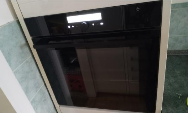 Sledila je menjava pečice. Staro pečico smo odstranili iz kuhinjskega elementa in vanj namestili novo parno vgradno pečico Gorenje. Priklop je bil standarden na vtičnico. Preizkusili smo delovanje pečice, ker gre za napredno pečico smo gospe še nastavili osnovne nastavitve in ji razložili delovanje. S tem smo tudi zaključili montažo. Čas montaže ca. 1.5 ure.
