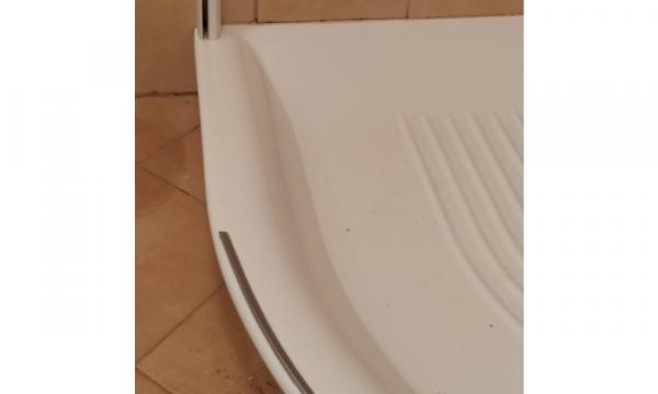 - Opis reference Gospodu Tonetu smo na tuš kabini obnovili vsa tesnila, ponovno pritrdili vse nosilce in kabino očistili plesni in umazanije,ki se nabrala z leti. Vsaka kabina je na nekaj let potrebna temeljite prenove. Z leti se nabere veliko umazanije, ki se skriva na mestih, ki ponavadi med rednim čiščenjem niso dostopna. Prav tako se pojavi plesen na silikoniziranih delih kabine, ki jo je nemogoče odstraniti s čiščenjem. Kabino smo rastavili, sneli vsa tesnila, jih očistili, odstranili ves stari silikon, vodni kamen, prav tako smo temeljito očistili tudi tuš kad. Tesnila smo namočili v posebno raztopino, da so postala zopet prožna, predvsem pa čista. Na novo smo pritrdili tudi prečne stabilizatorje stranskih stekel, ki so bili že dokaj razmajani in niso več opravljali svoje naloge. Kabino smo zmontirali nazaj, namestili tesnila, naravnali vrata, da se lepo zapirajo. Na novo smo zasilikonirali vsa mesta, kjer je silikon potreben in tako zaključili obnovo kabine. Čas demontaže in montaže kabine skupaj s čiščenjem ca. 3.5 ure